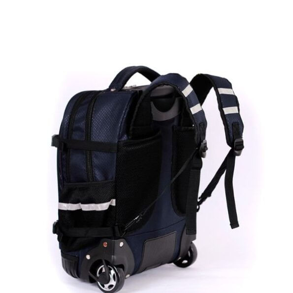 Mochila con Carro elf - IMAGEN ILUSTRATIVACARACTERISTICAS:- Apertura principal amplia- Base plástica reforzada- Dos divisiones- Trolley (carrito) de metal con doble altura- Dos ruedas grandes- Bolsillos frontales- Bolsillos de red con elástico en los laterales- Bolsillos individuales para las tiras- Interior forrado- Protectores plásticos en los bordes inferioresMedidas 47 x 33 x 23 cm.