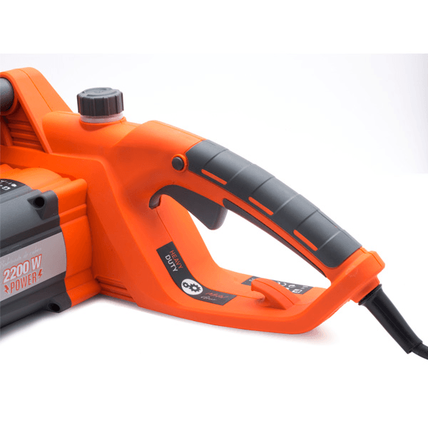 Nuestra electrosierra DCS2216E es el equipo ideal para el mantenimiento de campo o finca cuenta con potente y robusto motor de 2200 watts, lo que lo hace un equipo super práctico al no utilizar combustibles ni mezclas para realizar su trabajo. ¡¡¡Simplemente se enchufa y listo a trabajar!!! Cuenta con una espada de 16 pulgadas (40 cm). Su sistema de ajuste de tensión de cadena no es necesario el uso de herramientas. Cuenta con los mismos sistemas de seguridad de una motosierra convencional para que tu trabajo sea siempre seguro. También cuenta con visor de nivel de aceite de cadena. No se nos escapó ningún detalle !!!