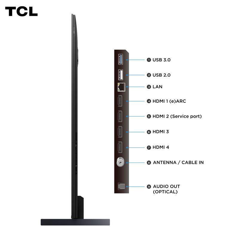 4 puertos HDMI (versión 2.1 con eARC/ARC), USB, Ethernet, salida óptica digital